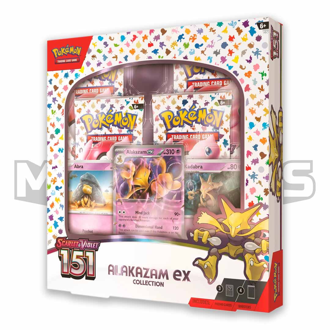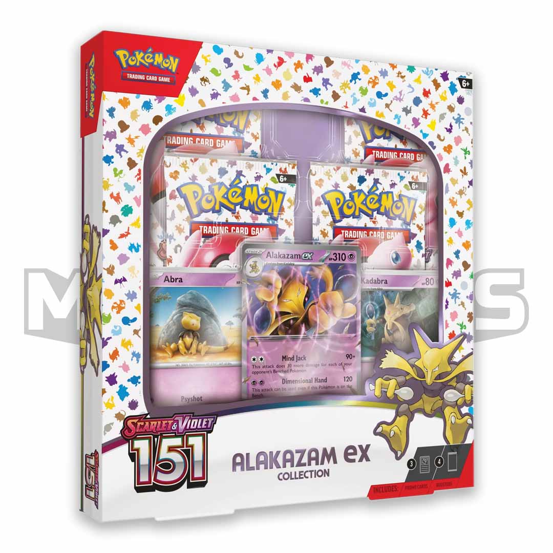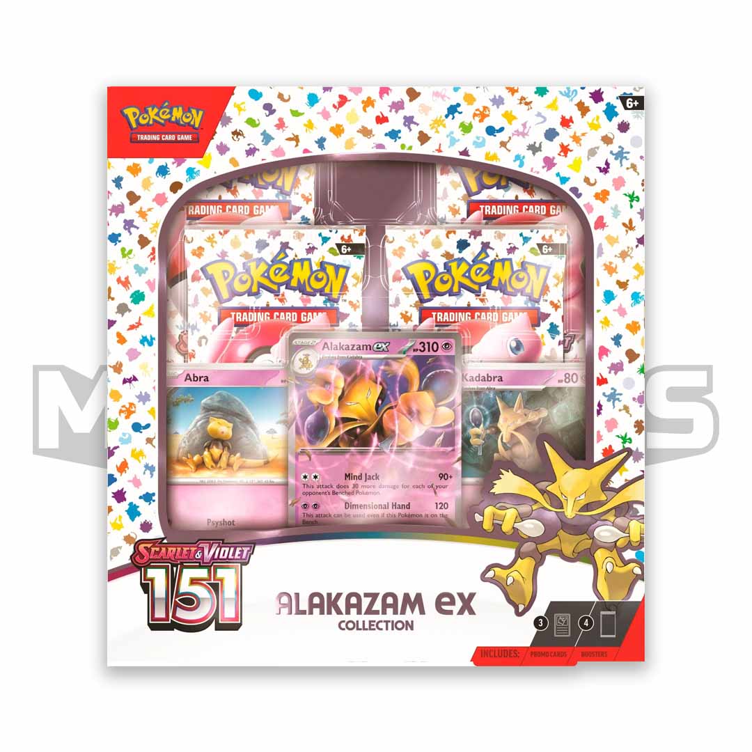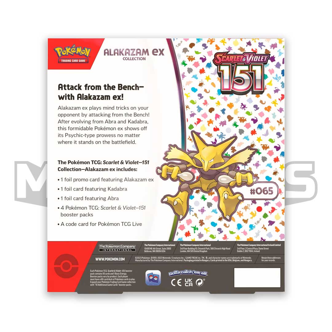 Includes four Scarlet & Violet—151 booster packs, one double rare card featuring Alakazam ex and two foil promo cards featuring Kadabra and Abra
