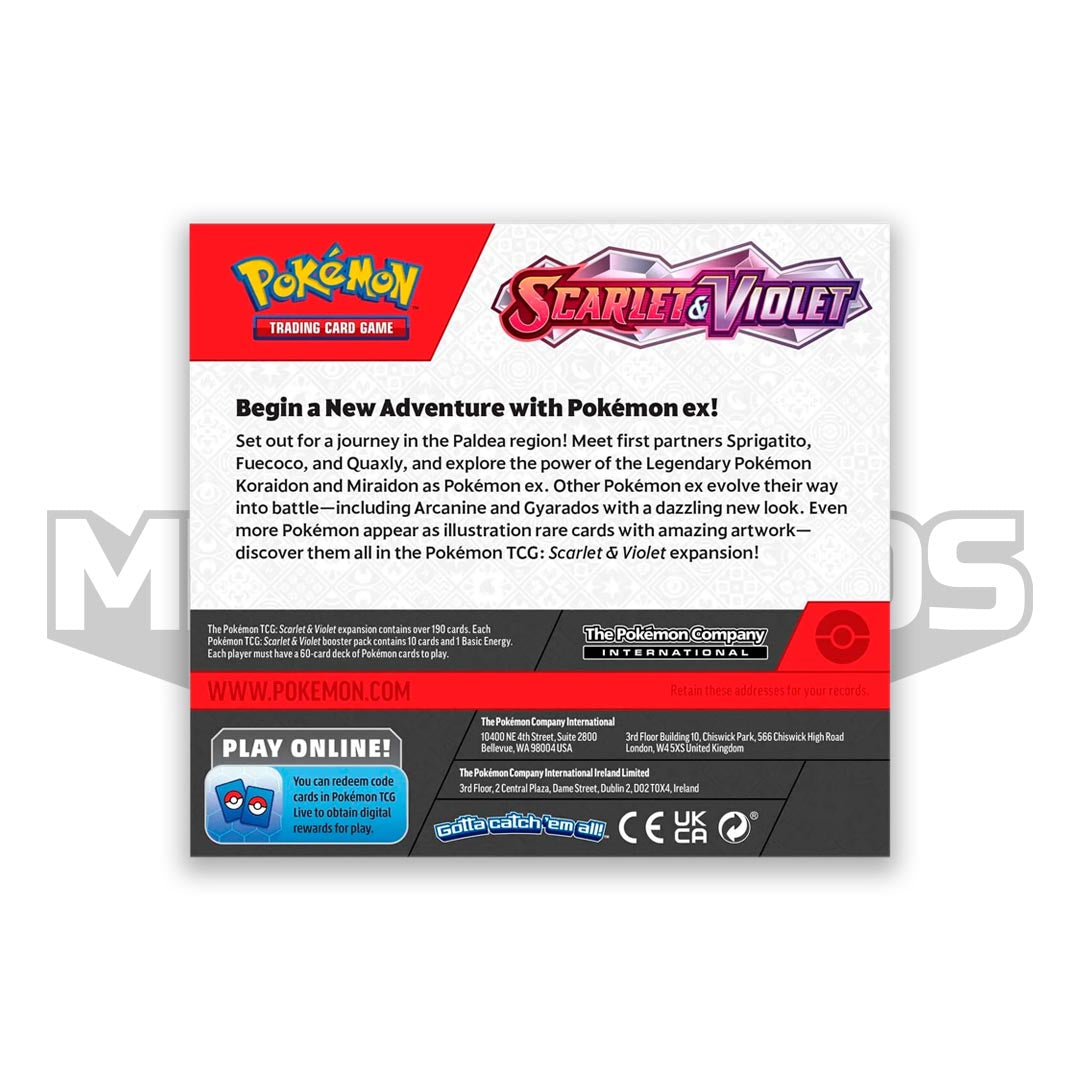 Set out for a journey in the Paldea region! Meet first partners Sprigatito, Fuecoco, and Quaxly, and explore the power of the Legendary Pokémon Koraidon and Miraidon as Pokémon ex. Other Pokémon ex evolve their way into battle—including Arcanine and Gyarados with a dazzling new look. Even more Pokémon appear as illustration rare cards with amazing artwork—discover them all in the Pokémon TCG: Scarlet & Violet expansion!