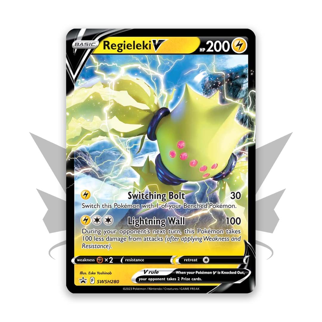 1x Regieleki V 1x Regidrago non-V foil promo card 1x Regieleki V Jumbo Card |