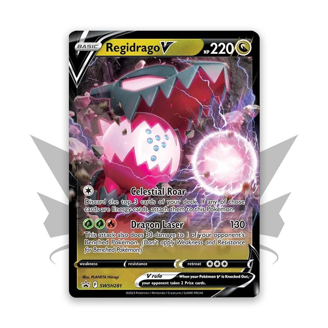 1x Regidrago V 1x Regieleki non-V foil promo card 1x Regidrago V Jumbo Card |