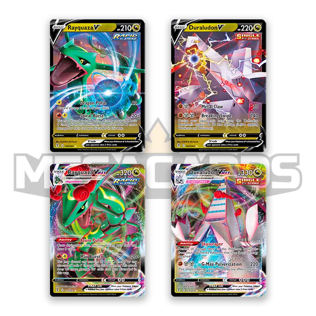- 2 etched foil cards featuring Rayquaza VMAX and Duraludon VMAX