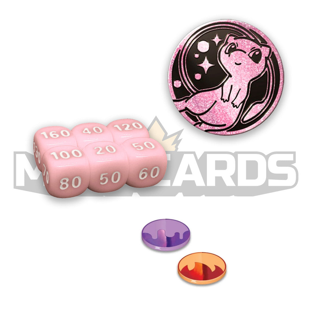 Deck Box, Mew Coin, Dice & Counters from the Scarlet and Violet 151 Ultra Premium Collection.