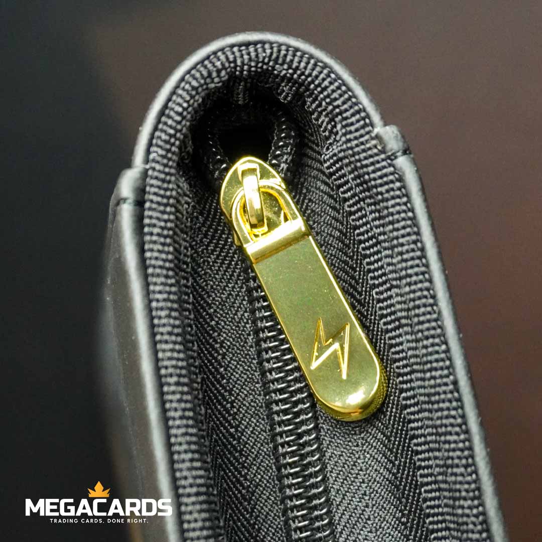 Each binder features a padded leatherette cover with foil detailing and a zipper closure. After unzipping the binder, you'll find twenty 12-pocket pages sized for standard trading cards in side-loading pockets, allowing you to store up to 480 cards in Ultra PRO Deck Protector® sleeves.